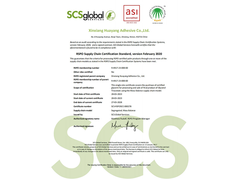 新鄉(xiāng)市華洋粘合劑有限公司成立于2002年,位于河南省新鄉(xiāng)縣華洋大道8號(hào),占地面積100余畝,獲得國(guó)家相關(guān)部門認(rèn)定的榮譽(yù)4項(xiàng),分別是專精特新小巨人企業(yè)、科技型中小企業(yè)、高新技術(shù)企業(yè)、CNAS實(shí)驗(yàn)室,獲得省級(jí)榮譽(yù)6項(xiàng),分別是河南省單項(xiàng)冠軍企業(yè)、河南省綠色工廠、2025年河南省智能車間、河南省優(yōu)秀民營(yíng)企業(yè)、河南省先進(jìn)單位、省級(jí)研發(fā)中心。此外,公司還通過(guò)了ISO9001、ISO14001、IS045001體系認(rèn)證及歐美RoHS、REACH認(rèn)證,國(guó)際HALAL、Kosher認(rèn)證,環(huán)保部十環(huán)認(rèn)證等。同時(shí),公司還擁有多名高職稱的國(guó)內(nèi)外專家,與鄭州大學(xué)、華南理工大學(xué)、湖北工業(yè)大學(xué)等多所高校進(jìn)行技術(shù)合作,現(xiàn)已擁有專利50余項(xiàng)?,F(xiàn)已成為長(zhǎng)江以北地區(qū)較大的三醋酸甘油酯、熱熔膠、接嘴膠、搭口膠等生產(chǎn)基地,公司現(xiàn)生產(chǎn)三十余種產(chǎn)品。公司產(chǎn)品廣泛應(yīng)用于煙草、家電、糧油、食品、包裝、飲料、電纜、書本等多個(gè)行業(yè),在國(guó)內(nèi)同行業(yè)企業(yè)中具有較強(qiáng)市場(chǎng)競(jìng)爭(zhēng)力。